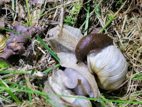 Birztalas vīngliemezis un Spānijas kailgliemezis.