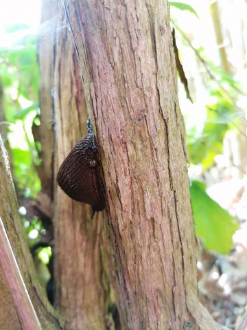 Melngalvas mīkstgliemeži ēd nokritušās plūmes.